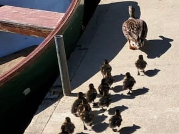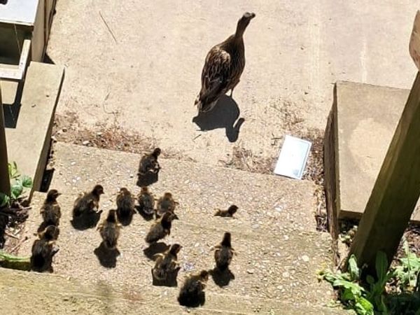 First ducklings of the year now swimming around. See them below on their first outing